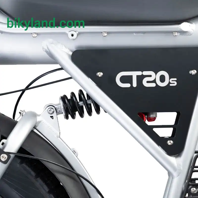 قلب تپنده این دوچرخه، یک موتور براشلس گیربکسدار ۱۵۰۰ وات است که شتابگیری قدرتمند و عملکردی فراتر از یک دوچرخه برقی معمولی ارائه میدهد. حداکثر سرعت ۵۵ کیلومتر بر ساعت باعث میشود CT20S در عمل یک وسیله حملونقل سریع شهری باشد، نه صرفاً یک دوچرخه تفریحی.
