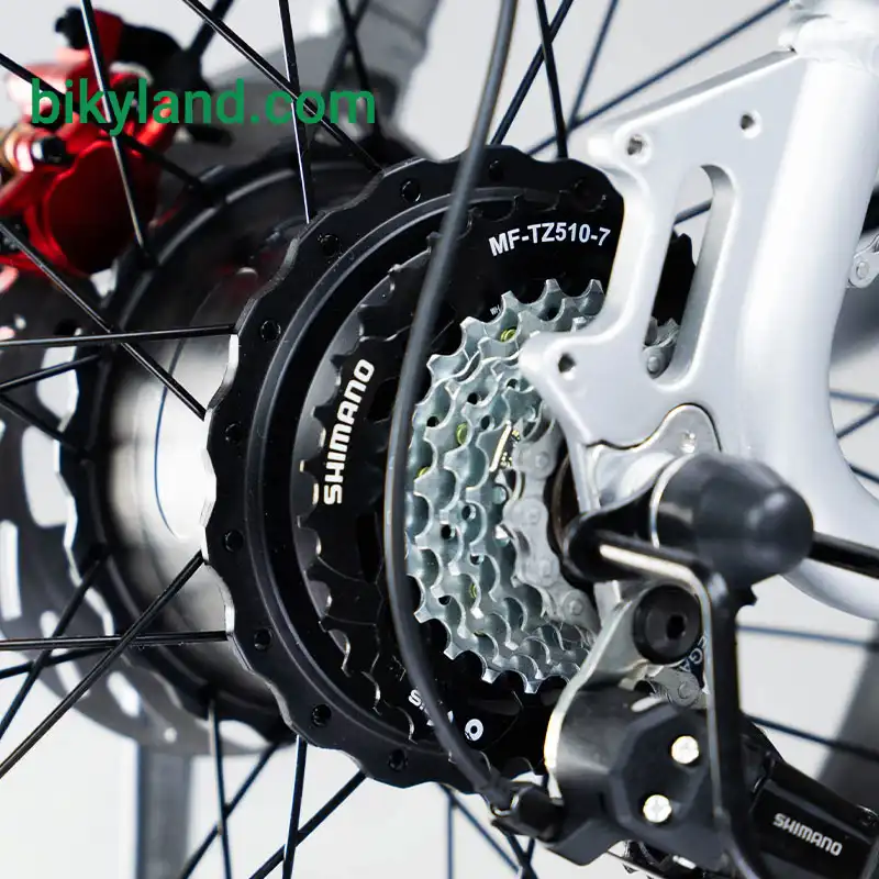 وجود فنربندی دوگانه (Full Suspension) تجربهای نرم و بدون ضربه حتی در مسیرهای ناهموار فراهم میکند. سیستم شانژمان SHIMANO با آرایش ۱×۷ دنده، کنترل دقیقتر سرعت و مصرف انرژی را ممکن میسازد. ترمزهای دیسکی هیدرولیکی عملکردی مطمئن، سریع و ایمن در توقفهای ناگهانی دارند که برای این سطح از سرعت کاملاً ضروری است.